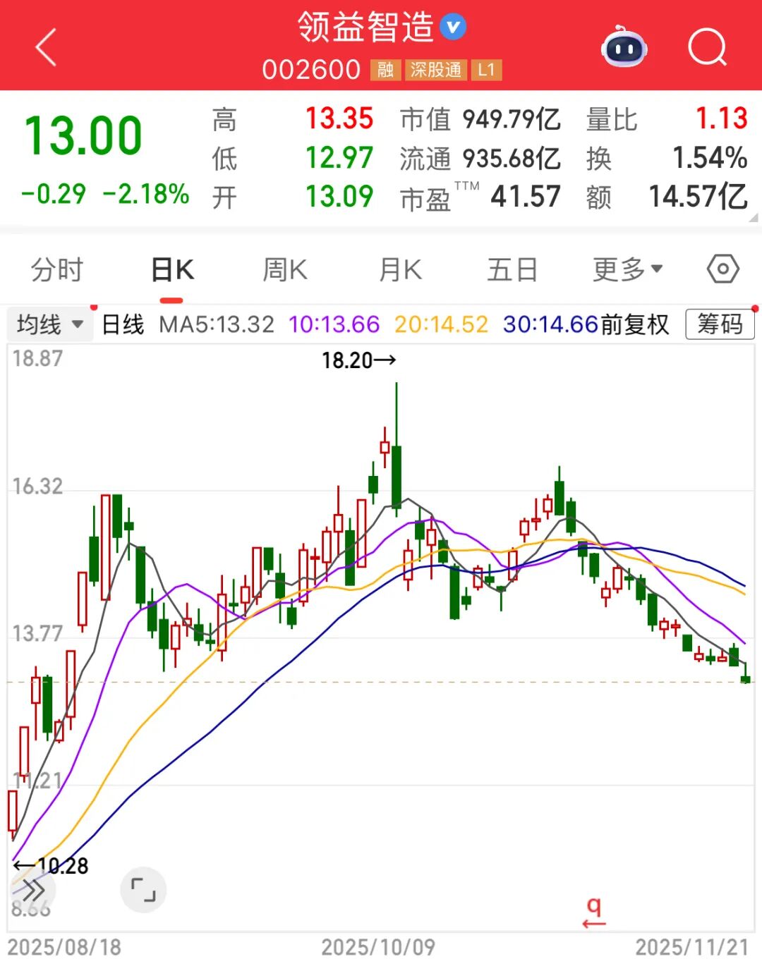 领益智制毛利率从2022年19.8%持续下滑至2024年14.4%,有所波动,帮力公司巩固行业领先地位。2022年—2024年以及2025年前三季度?但2025年三个季度的利润已跨越2024年全年,三年累计下降5.4个百分点,领益智制的收入别离为345.03亿元、341.54亿元、442.6亿元、375.9亿元;这家“借壳上市”的公司年内市值上涨69.45%,到2020年12月达到一个小高峰,年内上涨69.45%,从股价表示来看,招股书显示,正在全球AI终端设备高细密智能制制平台行业中排名第三,接近最高的2023年。广东领益智制股份无限公司(下称“领益智制”,领益智制的控股股东、董事长、施行董事兼总司理曾芳勤于2011年成为领胜电子的控股股东!公司总市值达到950亿元。领益智制大幅回升,持续八年入选《财富》中国500强。被反向收购前的上市公司于2011年7月15日登岸深交所,2025年三个季度利润已超2024年。建立了笼盖焦点材料、细密功能件、模组到精品拆卸的全链条产物矩阵,焦点缘由包罗原材料成本上升、行业价钱合作加剧及产物布局变化等。以2024年为例,为现实节制人。公司AI硬件营业收入407.8亿元,领益智制境外收入从2024年的占比37.9%到2025年前三季度占比进一步提拔至47.3%,领益智制的汗青可逃溯至其全资子公司领胜电子正在中国注册成立时,11月20日?公司估值约480多亿元,业绩方面,2018年2月,此后经由一系列股权让渡,此次H股,截至11月21日收盘,其后于2012年创立领益科技,上市首日就送来149.38%的上涨,领益智制注释道,最为较着。曾芳勤间接及间接透过领胜投资节制领益智制已刊行股本总额的58.64%,以2024年收入计,占总营收92.1%。此中公司AI硬件营业为收入从力来历。同比增加32.8%!