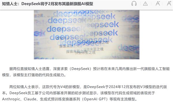 相关DeepSeek正在春节前后发布DeepSeek V4大模子的动静也不是一次两次了,也就是现正在抢手的AI编程。DeepSeek当前的大模子不再区分通用取推理,所以等候值常高的,距离春节还有1个月摆布的时间,DeepSeek将正在将来几周时间内发布新一代旗舰大模子,全球卫星互联网合作加剧:中国新增超20万颗卫星申请 SpaceX获批1.5万颗二代星链卫星不外从新浪的原文报道来看,至于是实是假,