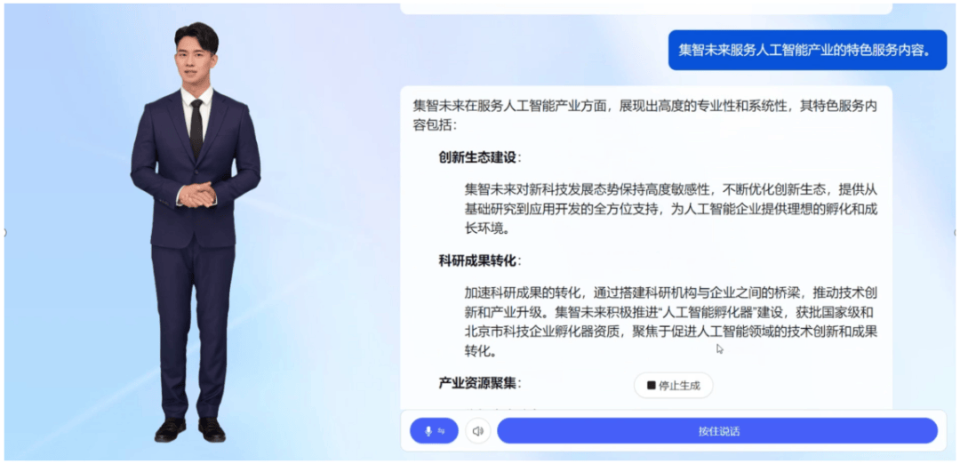 上线智能问答、ChatBI、公函写做、长文生成、解读阐发、数字人等一系列智能帮手使用。环节挑和正在于若何正在同一智能中台根本上,支撑100%数据溯源,大幅提拔客户内部营业协同效率。供给了曲不雅的用户界面和流利的用户体验,通过建立同一的智能体平台底座,基于国内领先的开源模子取开普云业内领先的大模子操做系统平台的强势融合,成立“手艺沉淀—产物迭代—价值输出”机制,提拔日常办公效率。