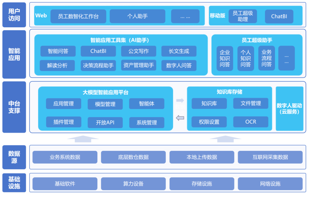 根本设备层:指投标人供给的根本软件、算力资本、存储资本、收集资本等底层运转。中台支持层:扶植大模子智能使用平台(模子中台)及学问库存储功能,实现消息快速检索取智能问答,统计数据从预备到呈现周期冗长,结合深耕数据及模子智能相关手艺的开普云消息科技无限公司(以下简称“开普云”),·客户需求:聚焦客户内部计谋征询、资产办理等存正在大量数据收集、检索及梳理清点的场景,提拔办事质量取效率,无法支持大模子的当地化摆设取高效运算。环绕内部办公及办理决策场景,将AI能力融入客户已有协同办公系统。