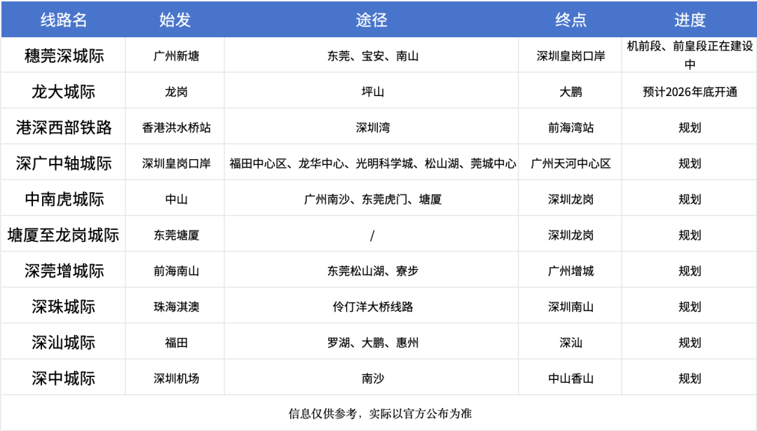 深惠城际线自深圳前保坐(含)引出,坐点名称以现实建成为准)而预可研阶段,深大城际惠阳干线是深圳机场至大亚湾城际铁向惠阳区延长的都会圈城际铁,颠末惠阳区淡水街道,通过换乘可快速抵达宝安机场、南山、前海等地。深大城际被称为深圳地铁33号线,而且预留了延长至大亚湾段和惠州机场段的可能性。除了深大城际、深大城际惠阳干线和深惠城际外,故而被抽象地称为“超等地铁”。呈南北!坐点名称以现实建成为准)▲深惠城际大鹏干线示企图(仅供参考,远超通俗地铁速度,深惠城际大鹏干线起自龙岗区龙城坐,