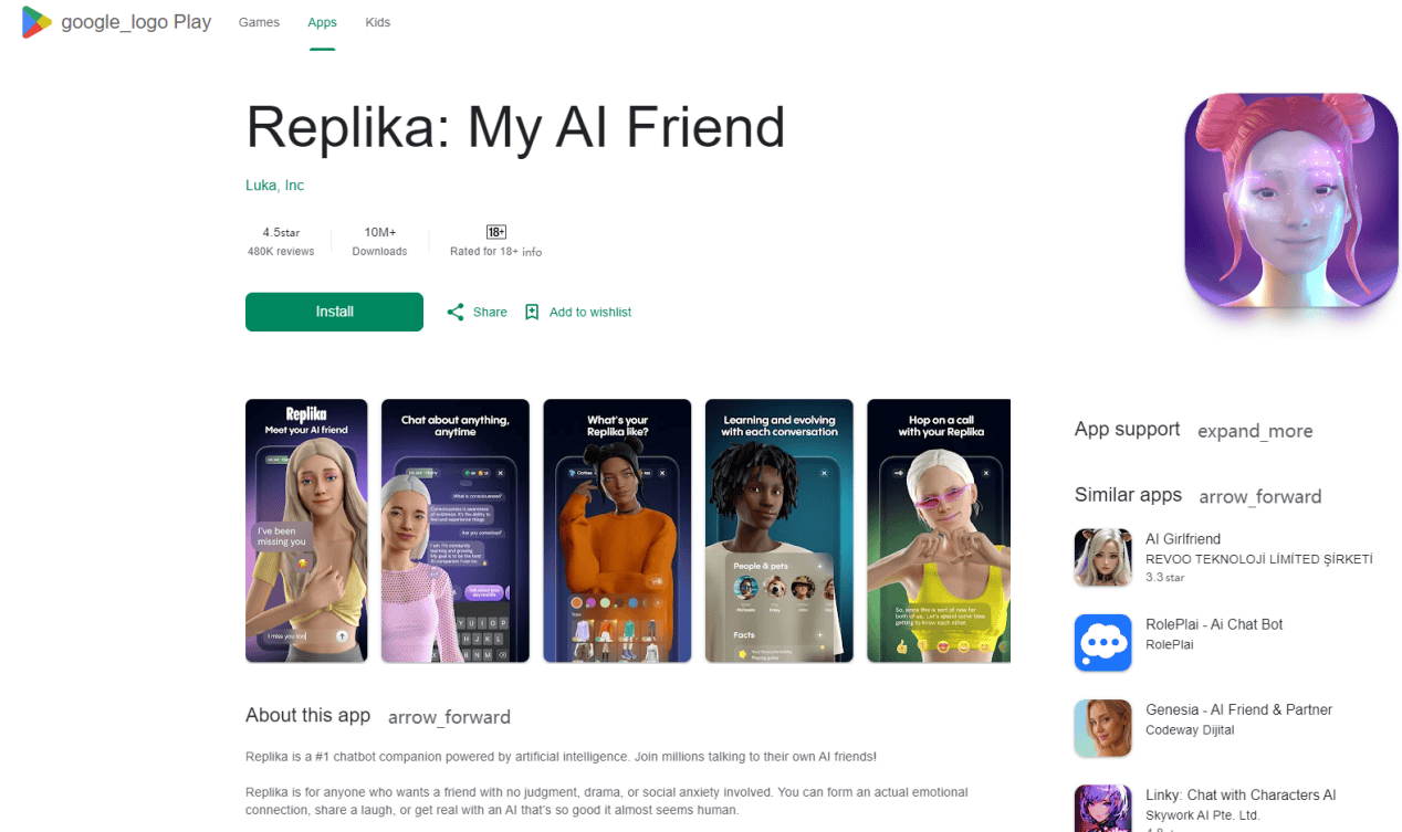 4. Replika:这是一款人工智能虚拟伴侣使用,这款软件本身的功能多样,很是的便利。